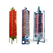 螺旋溜槽概况:玻璃钢螺旋溜槽具有国内先进水平的高效重选新设备。用于选别粒度0.3-0.02毫米细粒的铁、锡、钨、钽、铌、金矿、煤矿、独居石、金红石、锆英石以及具有足够比重差的其它金属、非金属矿物,经冶金部组织有关科研,设计、高校和厂矿等单位进行鉴定通过,认为该设备性能优良,选别指标先进,确定成批生产推广使用。