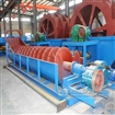 螺旋槽式洗砂机适用於黑色和有色冶金矿山等预选矿石、将矿石用水洗选,以除去原矿中的泥砂等杂质,从而使矿石达到工艺和经济上的要求,广泛用于锰矿脱泥粗选和精选,特别对埋於泥土中的颗粒锰矿石效果最佳。它的处理能力较大是满足大生产力对矿石、石料的清洁度有要求的企业的理想设备。