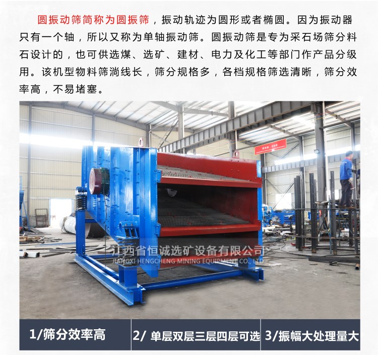 产品概况:YZS圆振动筛是一种新型筛分设备,振动轨迹为椭圆,是专为采石场筛分料石设计的,也可供选煤、选矿、建材、电力及化工等部门作产品分级用。该筛机具有结构先进、激振力强、振动噪音小、易于维修