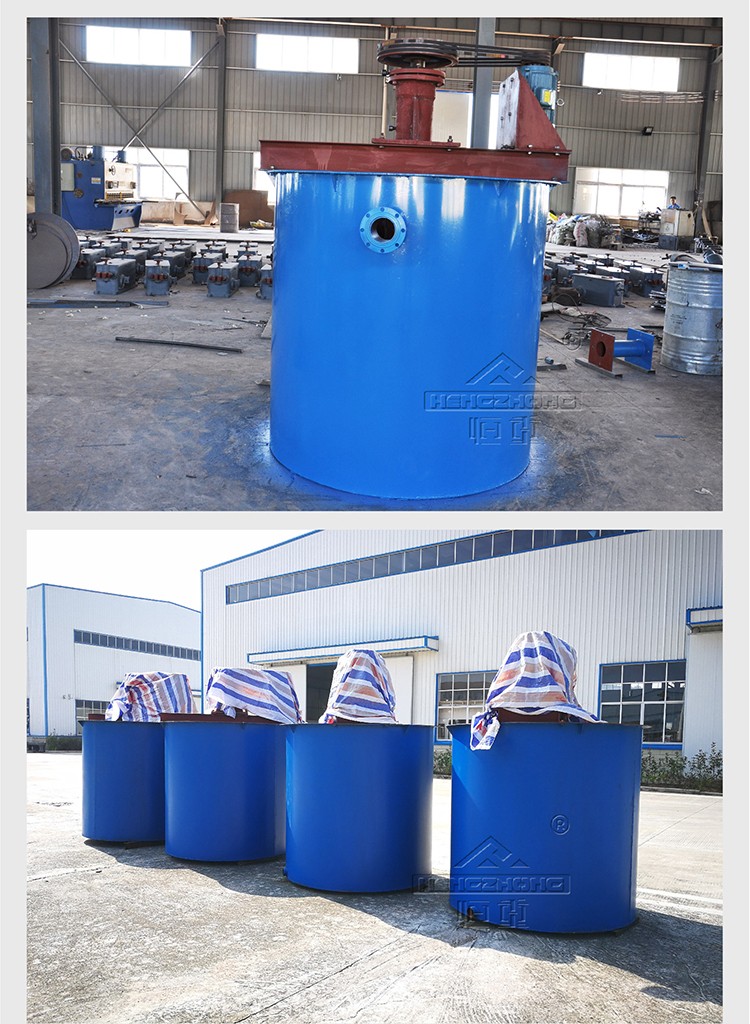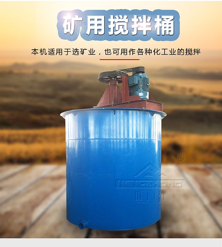搅拌桶用于浮选作业前的矿浆搅拌,是药剂与矿浆充分混合,为选矿作业创造条件。也可将火力发电厂电除尘器、省煤器、空气预热器等灰斗下部储灰斗中的煤灰在桶内加水进行高浓度的搅拌。浓度由加入的水量调节,搅拌