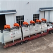 KYF浮选机采用“U”型槽体、空心轴充气和悬挂定子,尤其是采用了一种新式叶轮。这是一种叶片后倾一个角度的锥形叶轮,类似于高比转速的离心泵轮,扬送矿浆量大、压头小、功耗低且结构简单。在叶轮腔中还装置了多孔圆筒形空气分配器,使空气能预先均匀地分散在叶轮叶片的大部分区域,提供了较大的矿浆-空气接触界面。