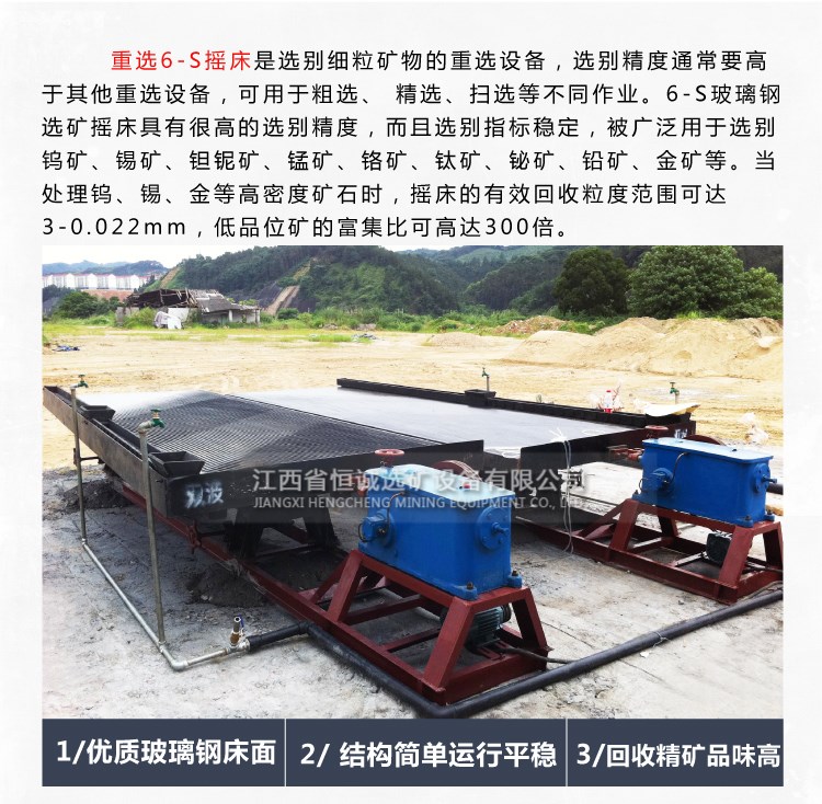 很荣幸为大家讲解沙金选矿摇床的使用技巧,首先需要大家知道,选矿摇床的使用原理。选矿摇床是通过矿物比重或者说提密度不同,从而将重矿物和轻矿物分离出来。在恒诚选矿设备公司发到您手上,请详细查看货物的完整性,我们会将使用安装光盘放入床头箱内。