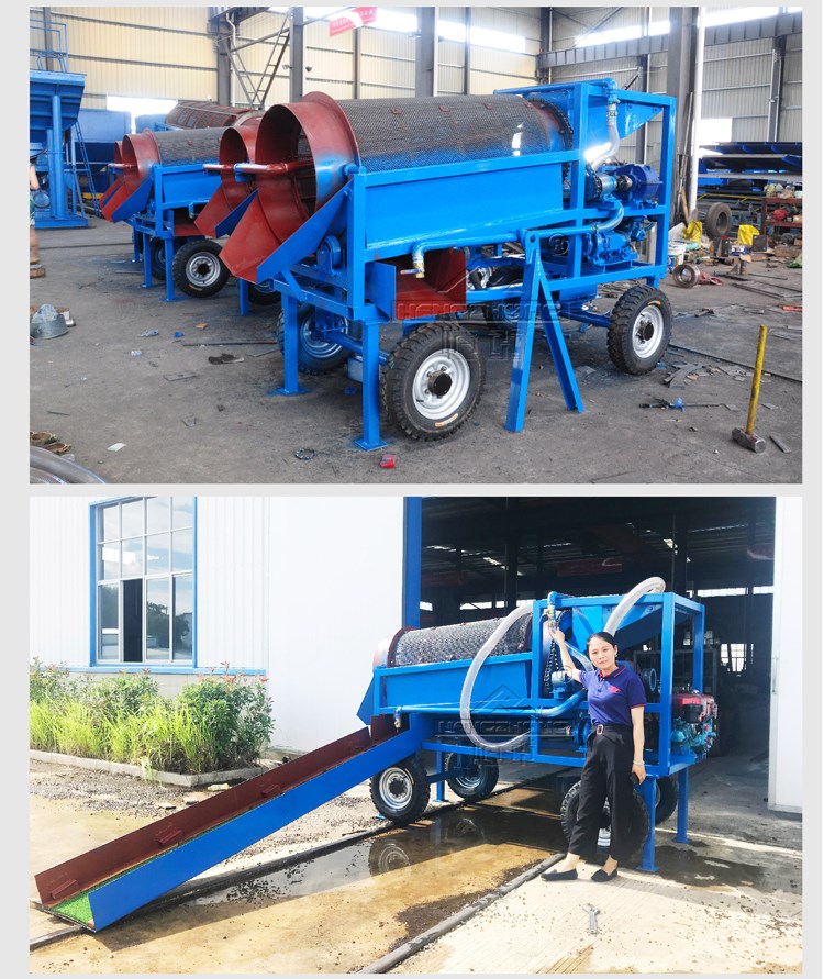 小型移动洗金机,整机可靠性高,投资成本小,配带柴油机、水泵于一体,自由移动筛分。非常适合小矿主使用。可一次性得到含金量高的砂金矿,最后通过摇床提纯,再进入熔金炉制成金条。