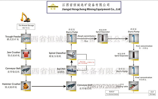 恒诚选矿设备厂是专业的选矿设备生产厂家,本厂根据自身实践经验对砂锡矿的选矿工艺流程做简单的介绍,以供参考!