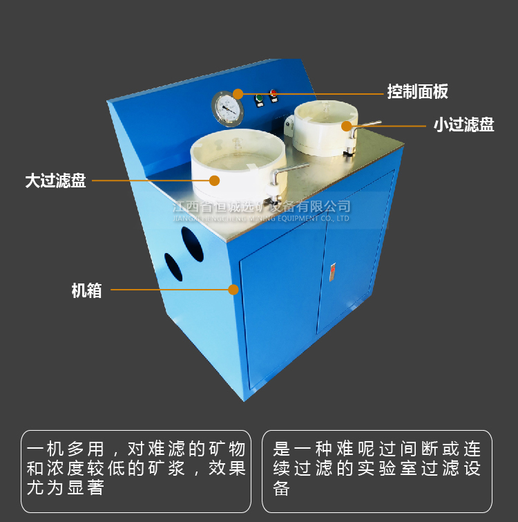 产品概况:多用真空过滤机是一种最新的过滤设备,适用于选矿冶金、地质、化工、建材、石油、造纸、人造晶体等部门的实验室和小型工厂进行产品脱水和固液相分离时使用。该机质量可靠,外型美观,操作方便,性能稳定,过滤效率高,一机多用,对于难滤矿物和溶度较低矿浆的过滤,其效果更为显著。