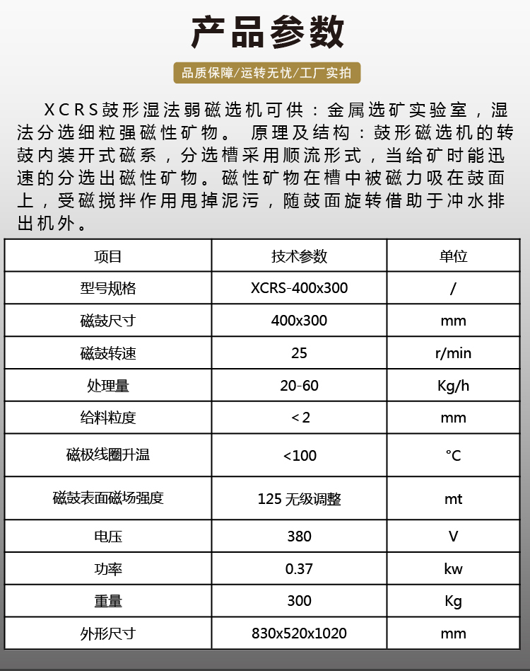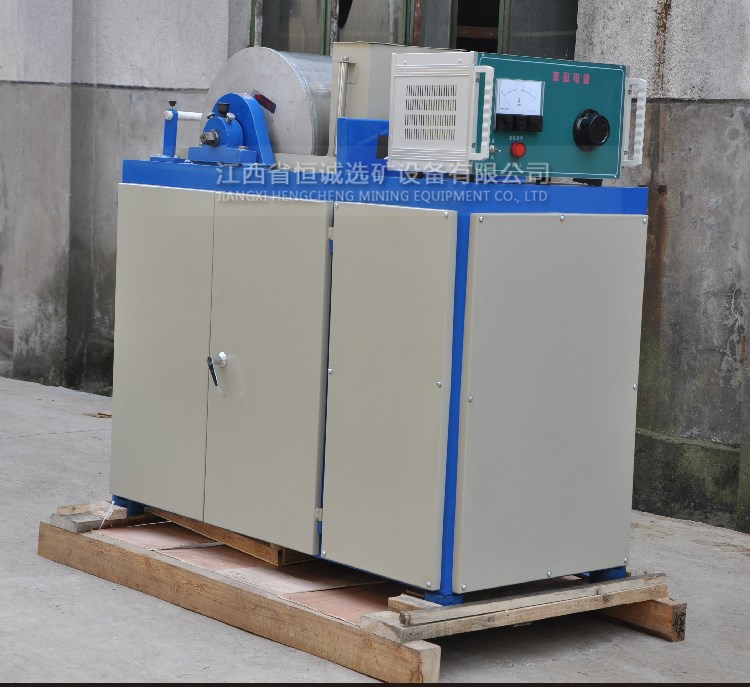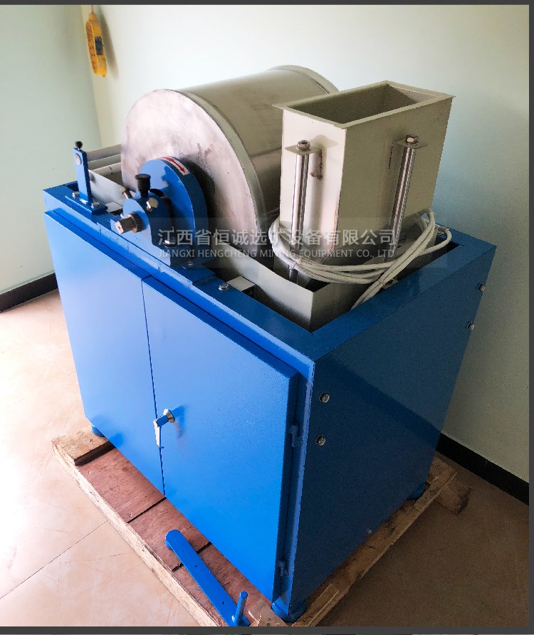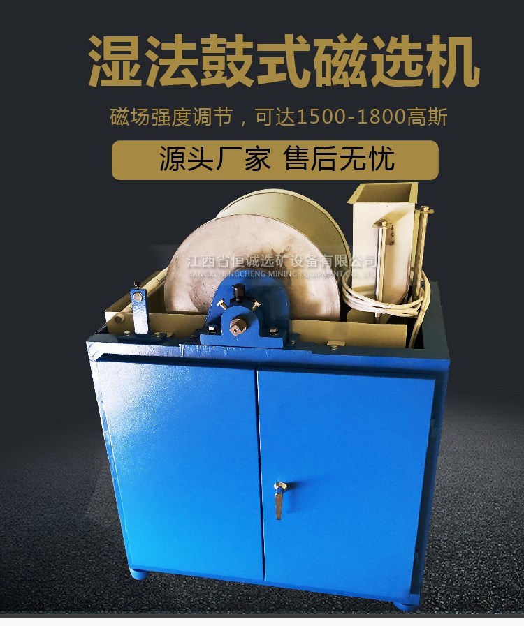 XCRS-74型鼓形湿法弱磁选机可供:金属选矿实验室,湿法分选细粒强磁性矿物。原理及结构:鼓形磁选机的转鼓内装开式磁系,分选槽采用顺流形式,当给矿时能迅速的分选出磁性矿物。磁性矿物在槽中被磁力吸在鼓面上,受磁搅拌作用甩掉泥污,最后随鼓面旋转借助于冲水排出机外。