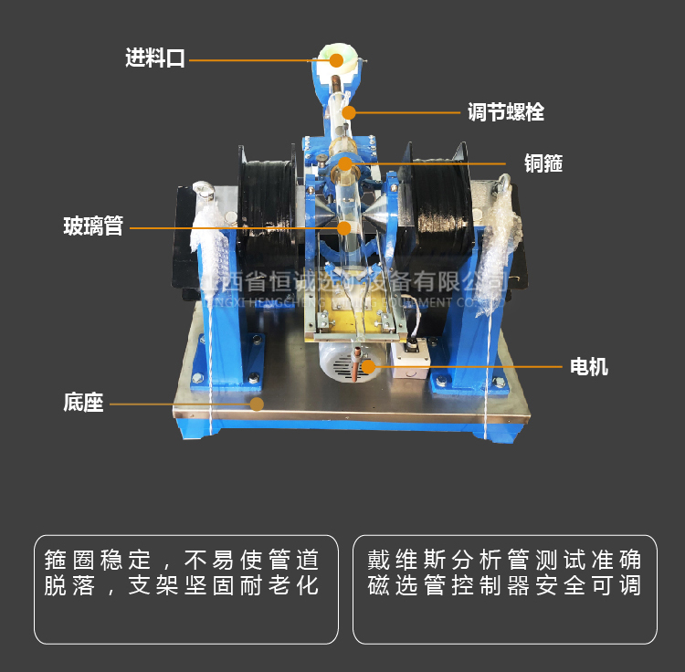 产品概况:XCGS磁选管又名戴维斯分析管,用于矿山,冶金,地质等实验室。是选矿过程中,用来测定磁性矿石中磁性成分的一种设备。本产品由原地矿部唯一指定企业生产,执行行业标准。XCGS磁选管式在C
