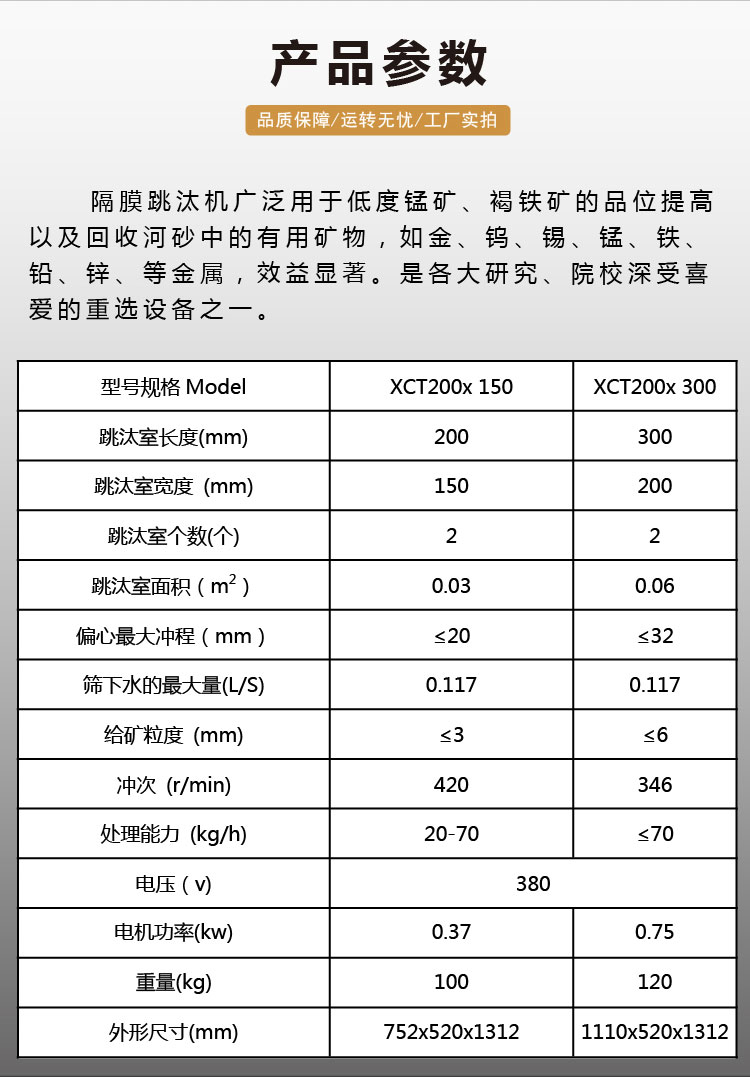 隔膜式跳汰机是重力选矿机一种,重力选矿是基于矿石的比重不同,在介质中沉降速度亦异,利用矿物重量上的差别,而完成矿粒混合物的分层选别工作。隔膜式跳汰机适于选别黑色和有色金属、化学、建筑等方面的实验研究之用。