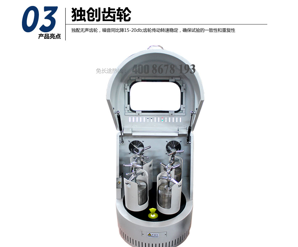 该机由于研磨体处于12-13g的离心立场内做研磨运动,所以研磨磨矿效率高,出料粒度细,该设备采用交流变频技术,可实验研磨盘的无极调速,另配定时装置。可选配不同规格的不锈钢研筒和玛瑙妍筒,适用研磨各种不同的物料,也可快速分批研磨各种有机、无机样品,质量控制样品,新型材料试验样品及其它物料。也可干磨和湿磨。
