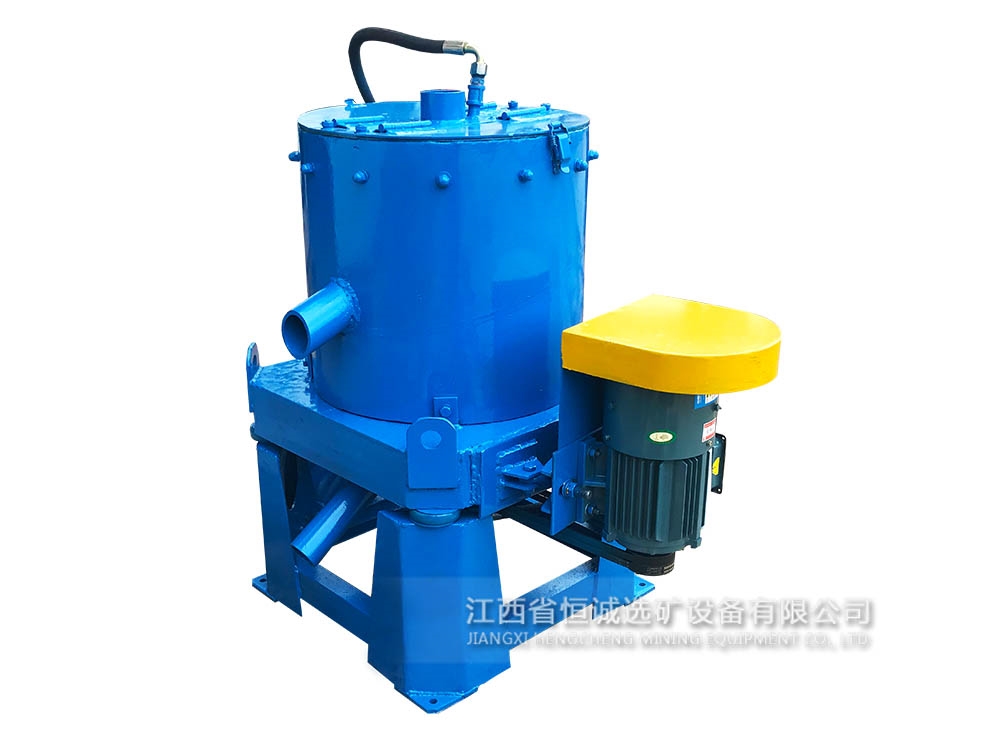 离心选金机是目前最新的一种重力选矿设备,该设备的原理是利用离心力来扩大矿物颗粒的重力来使重颗粒和轻颗粒分离。其关键的部件是一个锥形的富集锥,它由电机带动高速旋转并由加压的反冲水包围。进入离心机