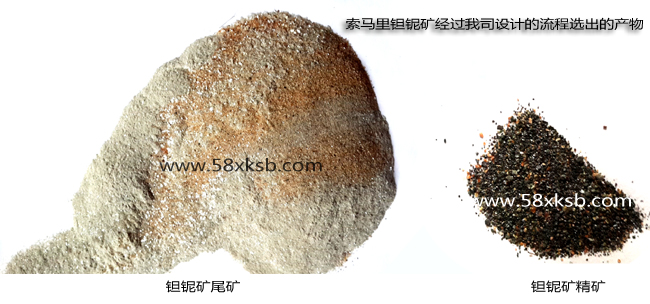 国外对钽铌铁矿矿石的粗选仍以重选为主,并多用高效的重选设备,流程简单。如格林布斯矿对-10mm原矿直接用跳汰机粗选。加拿大伯尼克湖钽矿80年代形成的重选-浮选-重选流程日趋完善,该流程仍以重选为主,浮选只用于处理细泥。重选设备体用了GEC螺旋选矿机、3层悬挂式戴斯特摇床、霍尔曼矿泥摇床、横流皮带选矿机。前苏联采用浮选对重选精矿中钽铁矿、细晶石与黄玉进行分离,捕收剂为异羟肟酸,调整剂为草酸,在盐酸介质中(pH2)浮选,当给矿含Ta2O5 2.52%时,精矿品位27%,回收率90%。