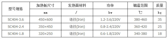 SC404型电热板适用于钢铁、煤焦、化工、学校、医院、科研单位实验室,化验室的加热器、散热均匀安全清洁,温度可自动调节,对有机及易燃物的加热更为理想的加热工具。本产品由原地矿部唯一指定企业生产,执行行业标准。