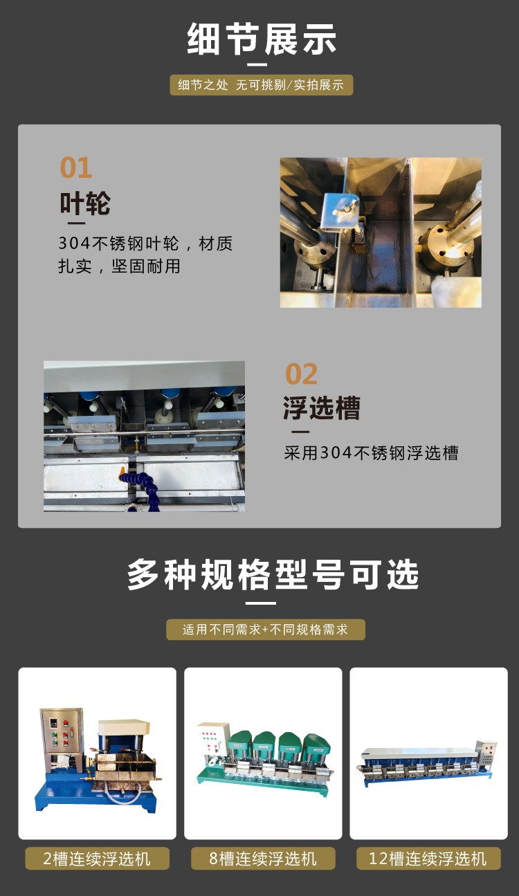 FX型机械搅拌式连续浮选机适于实验室用浮游进行矿物选别。此浮选机以二槽为一作业单元,可作4个单元的连续浮选实验,每个作业单元用单槽、双槽均可,根据用户要求可装置为左式或右式进矿浮选(移动中矿箱即可)。