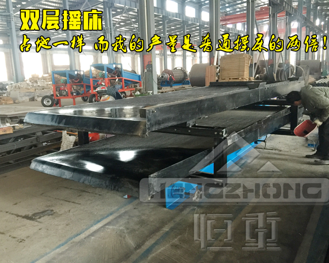 传统摇床占地面积大,处理量较低,客户投资增大,双层摇床占地面积更小,处理量大,设备成本低。