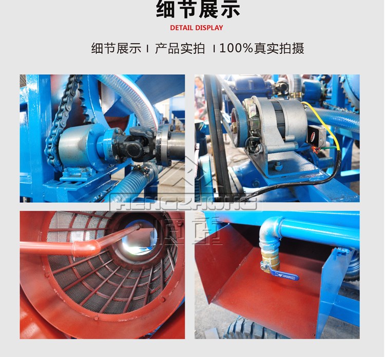 小型移动洗金机,整机可靠性高,投资成本小,配带柴油机、水泵于一体,自由移动筛分。非常适合小矿主使用。可一次性得到含金量高的砂金矿,最后通过摇床提纯,再进入熔金炉制成金条。