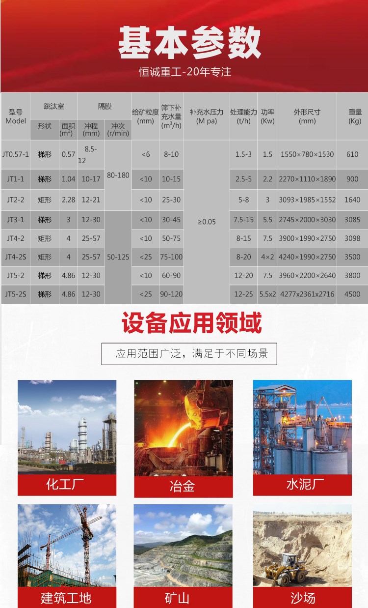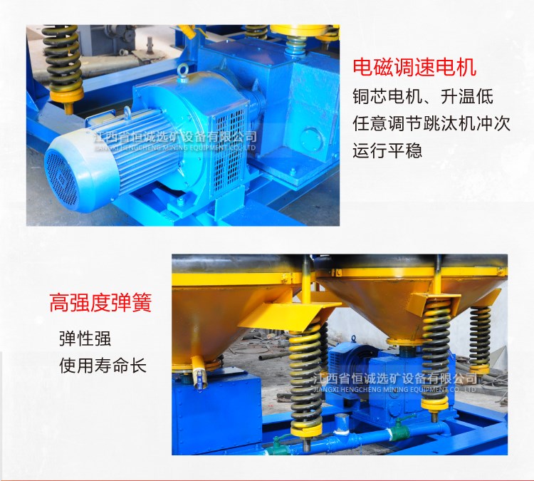 锯齿波跳汰机是我厂与科研单位合作开发的节能高效新产品,它是重力选矿的关键设备。由于它处理能力大,选别粒度范围广,回收率高,效果好,故广泛应用于选别砂金、锡、钨、铅、锌、锑、锰、金刚石、铁矿等有色冶金矿山和采金船上。