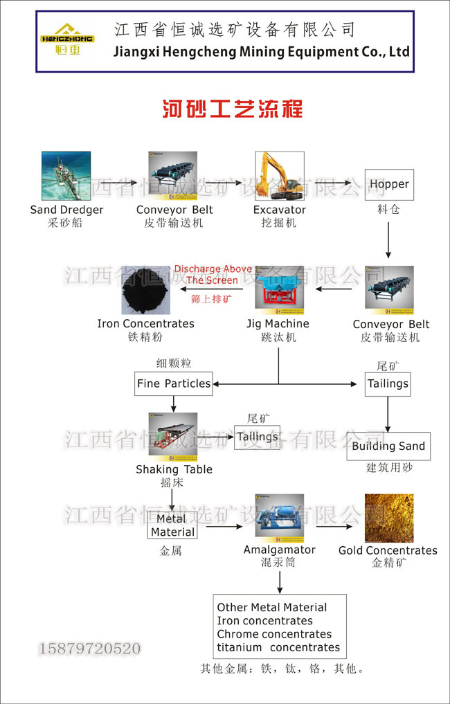 江西省恒诚选矿设备有限公司是国内专业生产河砂选矿设备的厂家,旗下产品质量可靠,运转平稳,深受用户的好评,欢迎新老客户来我厂参观考察。若您对我厂河砂选矿设备还有别的疑问或见解,请拨打详细咨询热线:0797-5711595