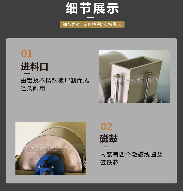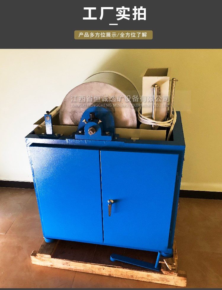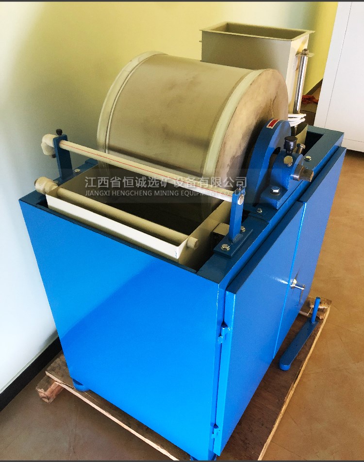 XCRS-74型鼓形湿法弱磁选机可供:金属选矿实验室,湿法分选细粒强磁性矿物。原理及结构:鼓形磁选机的转鼓内装开式磁系,分选槽采用顺流形式,当给矿时能迅速的分选出磁性矿物。磁性矿物在槽中被磁力吸在鼓面上,受磁搅拌作用甩掉泥污,最后随鼓面旋转借助于冲水排出机外。
