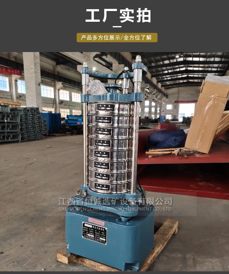 200型试验筛是以振动电机作为振动源的,振动电机振动带动筛机底座振动,再通过底座传导到安放在底座上的标准试验筛,标准检验筛上,使小于试验筛筛面网孔的物料颗粒筛分进下层试验筛,如此层层筛选,使每层试验筛内只留相同粒度的物料。达到不同粒度的分离并确定此物料的粒度组成。