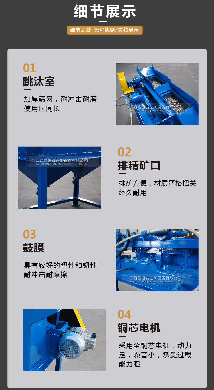 隔膜式跳汰机是重力选矿机一种,重力选矿是基于矿石的比重不同,在介质中沉降速度亦异,利用矿物重量上的差别,而完成矿粒混合物的分层选别工作。隔膜式跳汰机适于选别黑色和有色金属、化学、建筑等方面的实验研究之用。