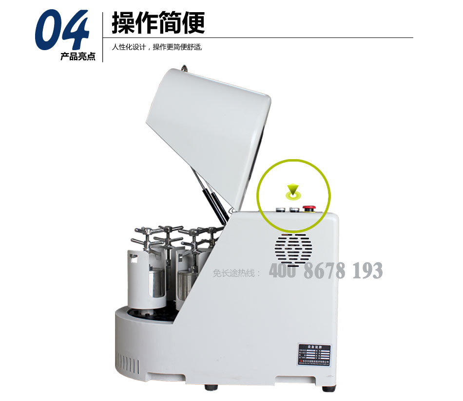 该机由于研磨体处于12-13g的离心立场内做研磨运动,所以研磨磨矿效率高,出料粒度细,该设备采用交流变频技术,可实验研磨盘的无极调速,另配定时装置。可选配不同规格的不锈钢研筒和玛瑙妍筒,适用研磨各种不同的物料,也可快速分批研磨各种有机、无机样品,质量控制样品,新型材料试验样品及其它物料。也可干磨和湿磨。