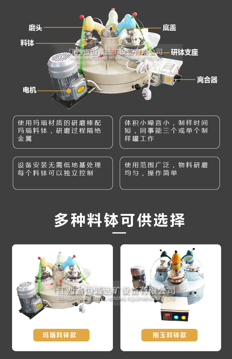 产品概况:XPMФ120×3三头研磨机是一种干法磨细、分析样品的研磨设备,主要供冶金、建材、化工、煤炭、水电、商检、地质等部门实验室研磨分析样品之用,也可供有关方面作为磨细一般少量物料之用。(标