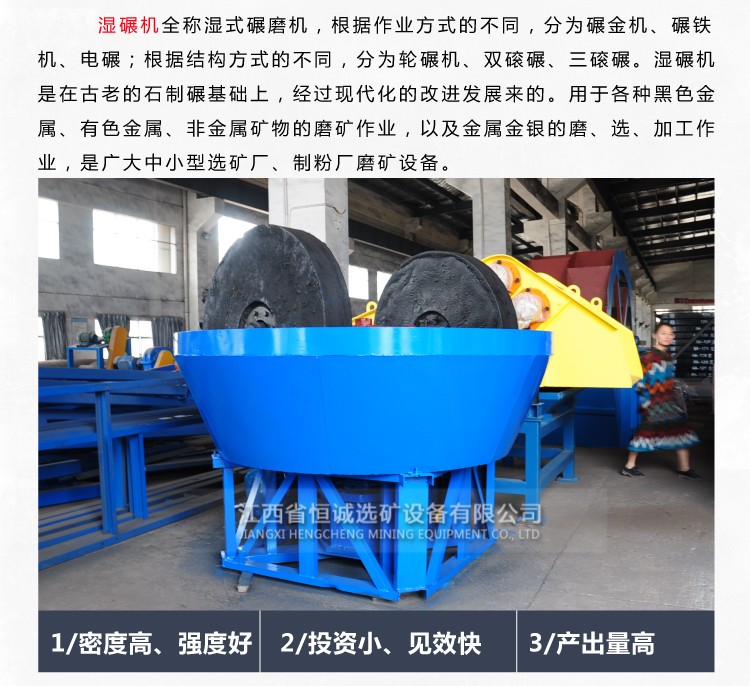 我厂生产的碾金机,在结构上合理吸收了国内选矿机械的特点,通过精心设计制成,采用硬齿面一体式减速箱,相比老式的汽车后桥和开式齿轮传动,具有寿命长、使用安全可靠、维护方便、结构简单、维修更换方便等优点。