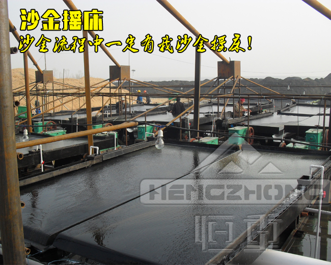 沙金选矿设备概况:沙金选矿设备摇床是我厂在多年的生产制造过程当中结合各大科研院校及大型矿山选场的使用经验,在普通6-S型摇床的基础上开发的一款新产品。我们将原有的床面与床脚间的接触部份“摇动盒”改进成了“溜动盒”